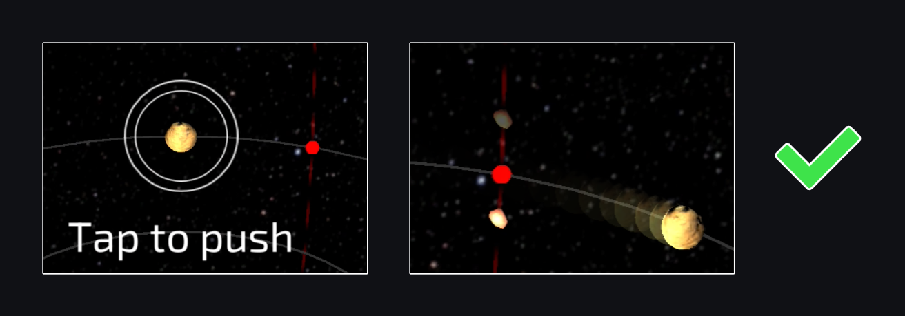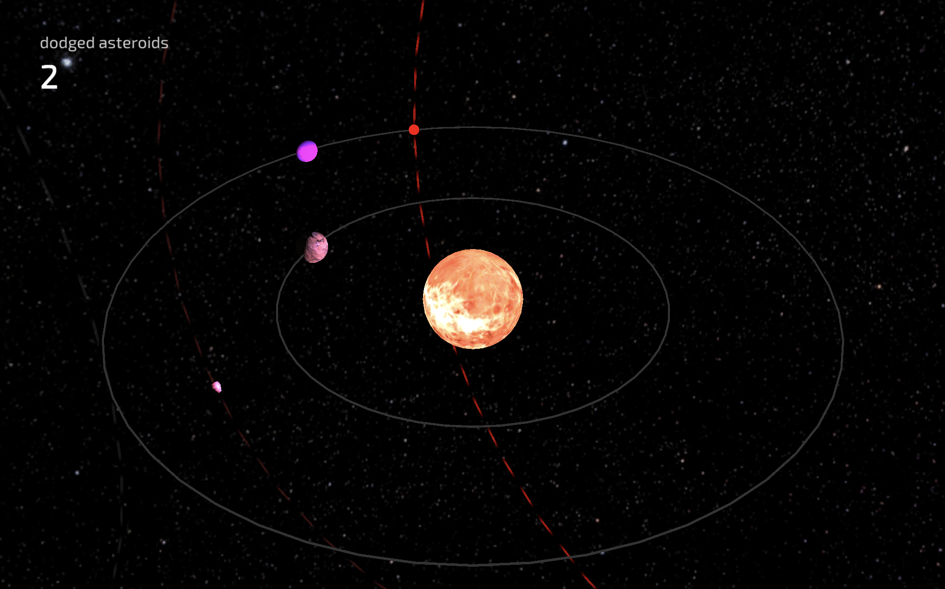 Every asteroid's path will be displayed for you. After new asteroid's path, that aimed at a planet's orbit, appeared you need to click on the planet. After you clicked on the planet, it will be pushed and will dodge the asteroid, so the planet will be saved