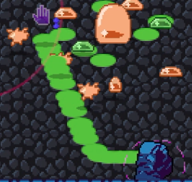 The acid slime leaves dangerous acid puddles on the ground that stay for a while. Watch out when moving stones — they can smear the acid around.